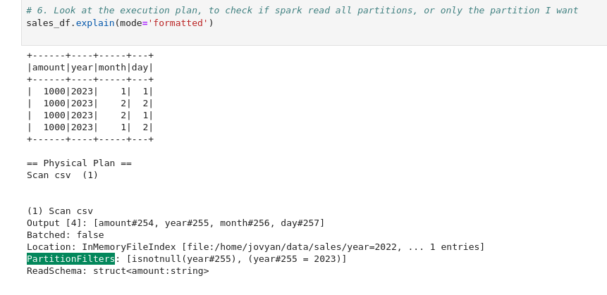 # 6. Look at the execution plan, to check if spark read all partitions, or only the partition I want